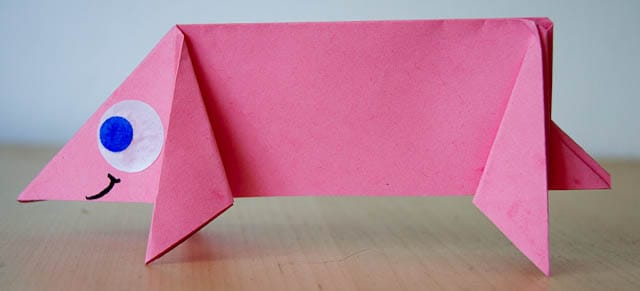 - Draai het werkje om en vouw ook daar een poot en een oor.