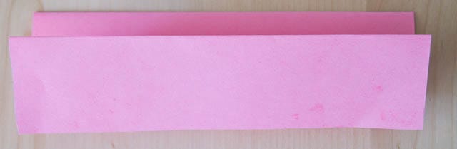 - Vouw het over de middenlijn naar achteren om er een rechthoek van te maken. (Als je het open zou vouwen zou je nu vier rechthoeken zien.)