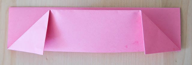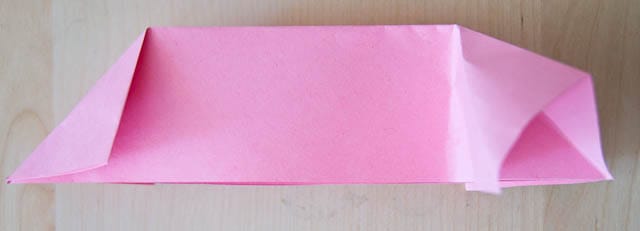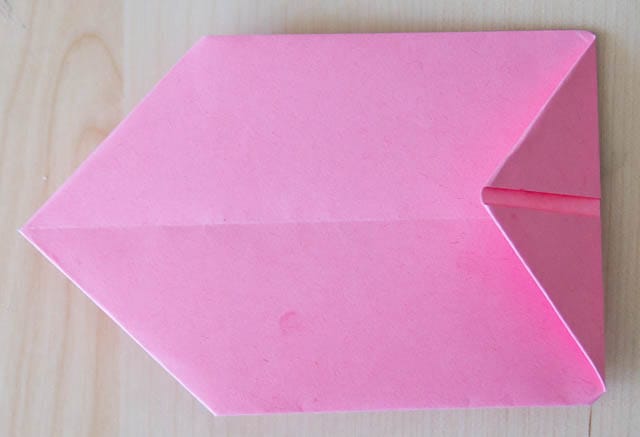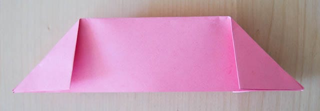 - Draai het werkje om en vouw weer de buitenste twee punten naar beneden.