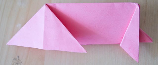 - Vouw rechtsbeneden de punt naar rechts om een poot te maken (zie foto).