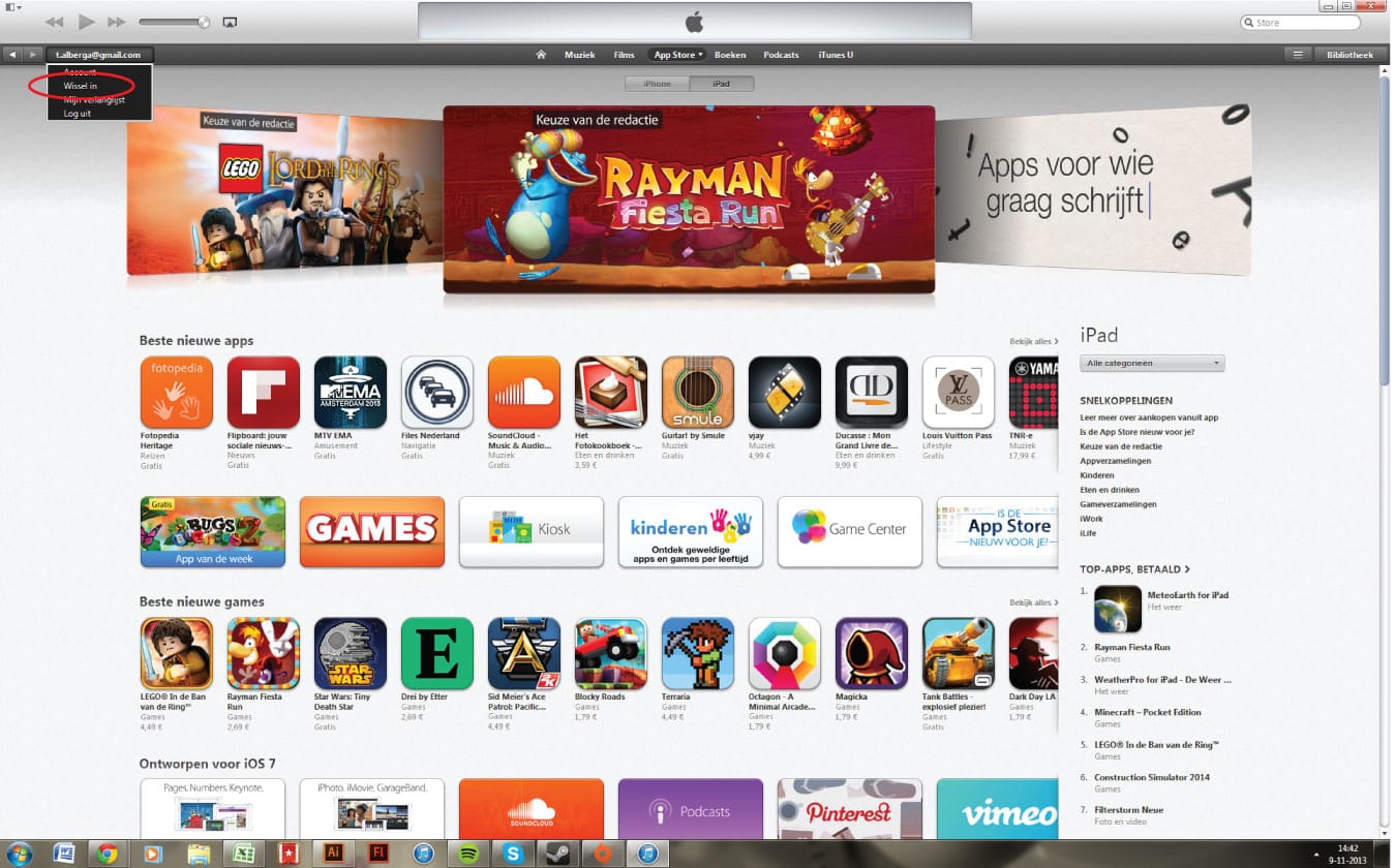 Hier zijn de plekken waar je je promocodes kan inwisselen. Via iTunes en via de appstore op de iPhone. Bij de iPad is het op de voorpagina van de appstore onder aan te vinden.