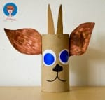 - Knip twee ogen uit en plak ze op in het midden van de wc-rol.