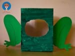 - Teken twee achterpoten van groen papier voor aan de zijkanten van de doos.