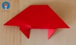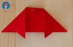 - Vouw van de bovenste driehoek de twee buitenste punten via de binnenkant naar boven. (zie foto)