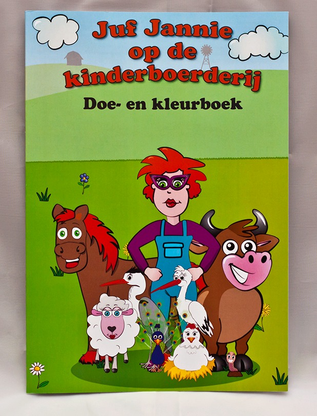 Juf Jannie van de educatieve kinderapp “Juf Jannie op de kinderboerderij” komt daarom met een doe- en kleurboek. Het boek sluit goed aan op de app “Juf Jannie op de kinderboerderij”. Kinderen kunnen zo op een creatieve wijze de leerstof van de app nogmaals herhalen.