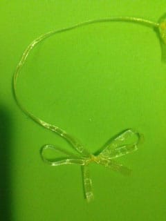 - Maak een een stuk lint aan de strik vast.