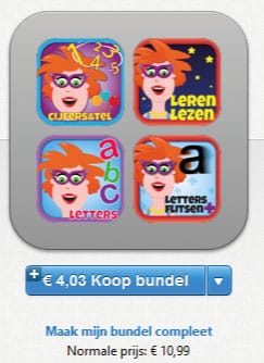 Heb je al aardig wat kinderapps gekocht? Dan is het slim om op zoek te gaan naar de bundels. Wie weet zit daar wel een bundel tussen die je gratis compleet kan maken.