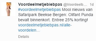 Gisteren (15-1-2016) zag ik een berichtje op Twtter over 25% korting bij Safaripark Beekse Bergen.