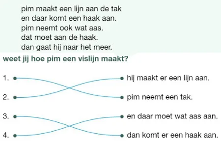 Kinderen lezen wat Pim mee maakt en maken dan de opdrachten bij het verhaal. Ze moeten goed nadenken over wat ze hebben gelezen, omdat het niet om simpele invulopdrachten gaat.